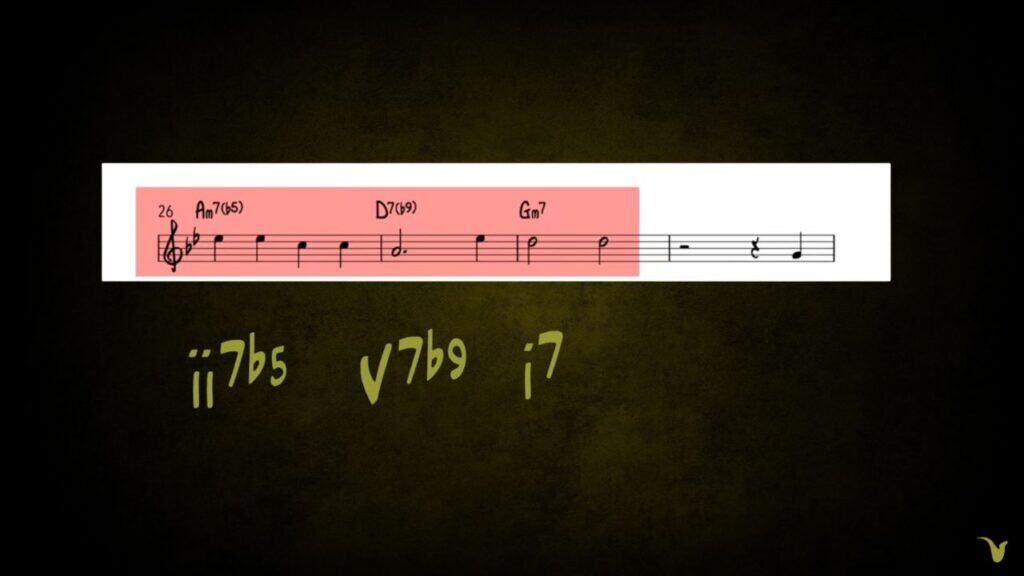 The next four bars of Autumn Leaves contain another must-know harmonic building block: the minor ii – V – i.