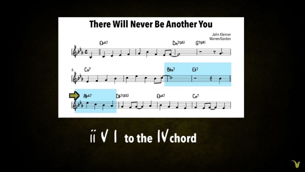 I love the dominant two chord right here in There Will Never Be Another You. The II chord is not minor, it’s a dominant 7. It gives this sense of anticipation. It’s leading us somewhere on the way home.